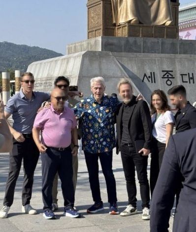 비공식 일정으로 내한한 빌 클린턴 전 미국 대통령이 광화문에서 포착된 사진. 사진=인스타그램, 온라인 커뮤니티, 뉴시스 |