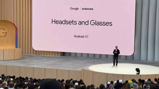구글은 안드로이드 XR을 기반으로 헤드셋과 스마트 안경 개발을 위해 삼성전자와 협업한다는 사실을 대형 스크린으로도 소개했습니다.
