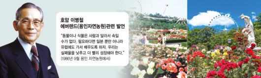"(용인자연농원의)나무 한 그루, 돌멩이 하나에도 온갖 정성을 다 쏟았다."(1985년 이병철 삼성 창업주)