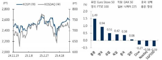 투자자들은 지난 6일동안 상승을 주도했던 기술주에 대한 차익 실현에 나섰다. 관세발 스태그플레이션 우려가 시장에 제기됐기 때문이다. 보스틱 총재는 단기적으로 금리 인하 가능성이 작다고 언급하면서 시장이 실망했다. 미국 10년물 국채 수익률 4,0bp 오른 4.49%로 미 재정 적자에 대한 경계심 이어진 가운데 상승 전환하며 마감했다.