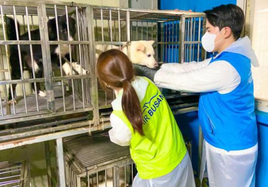 에어부산 객실승무원들이 유기동물 보호소를 찾아 따뜻한 손길을 전했다.