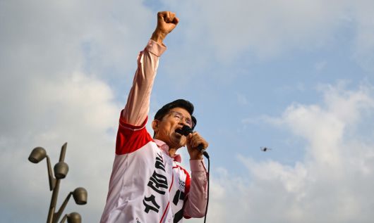 김문수 국민의힘 대통령 후보가 20일 경기 하남시 스타필드 앞에서 열린 집중 유세에서 지지를 호소하고 있다. 공동취재사진