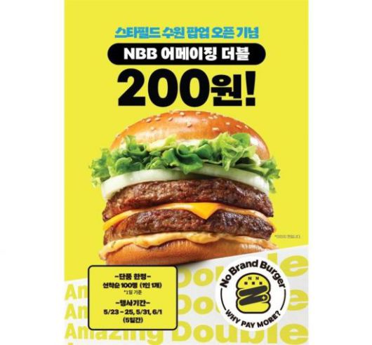 팝업스토어 오픈을 기념해 프로모션 지정일별 선착순 100명에게 'NBB 어메이징 더블' 단품을 200원에 제공하며, 팝업 스토어 운영 기간 매주 주말에는 버거 2세트 이상을 현장에서 구매한 고객에게 노브랜드 버거 한정판 리유저블 가방을 증정한다.