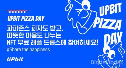 올해로 7회째를 맞는 '업비트 피자데이'에는 'Share The Happiness, Happy Upbit Pizza day!'라는 슬로건처럼 즐겁고 행복한 혜택들이 가득하다. 메인 이벤트는 '피자 NFT 무료 래플 드롭스'로 5월 22일 오전 11시부터 오후 6시까지 진행된다. 업비트NFT 내 NFT 무료 래플 드롭스 페이지에 접속, 피자데이와 관련된 퀴즈 한 문제를 맞히고 응모 버튼을 클릭하면 참여할 수 있다.