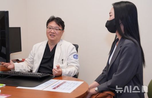 [서울=뉴시스]서울성모병원에서 신장이식 수술 준비 중 위암을 진단받았던 이보영 환자가 지난 20일 정기 외래진료를 위해 주치의 신장내과 정병하 교수를 찾았다. 환자는 위암수술과 남편의 신장 기증으로 이식수술을 받고 건강을 되찾았다. (사진= 서울성모병원 제공) 2025.05.21. photo@newsis.com. |