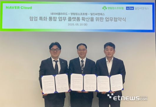 엔터프라이즈 솔루션 기업 영림원소프트랩(대표 권영범)은 국내 대표 클라우드 기업 네이버클라우드(대표 김유원), IT서비스 기업 일진씨앤에스(대표 허세경·허욱)와 손잡고 혁신적인 통합업무 환경을 구현할 '올인원 클라우드 워크플랫폼' 공동 개발을 위한 3자 업무협약을 체결했다고 21일 밝혔다.