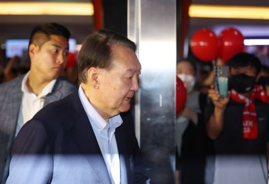 윤석열 전 대통령이 21일 서울 메가박스 동대문에서 이영돈 PD가 제작한 다큐멘터리 영화 ‘부정선거, 신의 작품인가’를 관람하기 위해 상영관으로 향하고 있다.(사진=연합뉴스) |