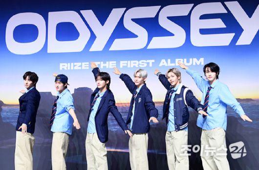 그룹 라이즈가 19일 오전 서울 용산구 블루스퀘어에서 열린 라이즈(RIIZE) 첫 정규 'ODYSSEY(오디세이)' 쇼케이스에 참석하고 있다. [사진=정소희 기자] |