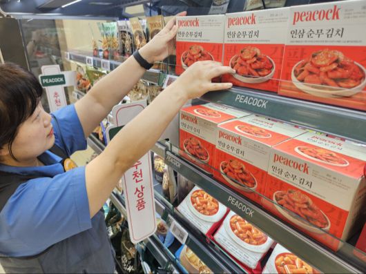 이마트가 최근 출시한 피코크 인삼순무김치는 아삭한 순무와 은은한 향의 인삼이 더해진 고급 별미 김치다. 다음달까지 5000개 한정 판매한다. 오는 29일까지 신세계포인트 적립 시 20% 할인 혜택을 제공한다.