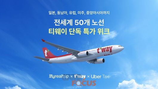 여행앱 마이리얼트립(대표 이동건)이 티웨이항공과 함께 전 세계 50개 노선의 항공권을 최대 40% 할인된 가격에 선보이는 특가 항공권 라이브커머스 방송 '티웨이 단독특가 위크'를 26일 오후 7시에 진행한다고 밝혔다.