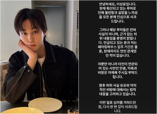 이상윤은 "억측과 비방은 자제해 주시길 부탁드린다"며 "향후 허위 사실 유포와 악의적인 비방에 대해서는 법적 대응을 고려하고 있다"고도 덧붙였다.