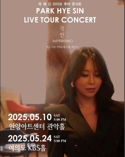 그런 박혜신은 지난 3월 11일 정규 앨범 《각인(刻印)》을 발표하며 본격적인 음악 여정을 재개했다. 타이틀곡 '각인'을 비롯해 '연인들의 밤은 짧아', '울 엄마의 노래' 등 수록곡은 모두 그녀 특유의 호소력 짙은 음색으로 채워졌으며, 발매 직후 팬들 사이에서 입소문을 타며 호평을 얻었다. 오는 5월 24일에는 KBS홀에서 서울 콘서트가 열릴 예정이어서 기대를 모은다.