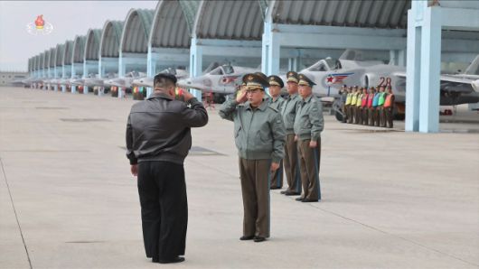 김정은 북한 국무위원장이 지난 15일 제1공군사단 관하 비행연대를 방문해 공군 반항공(방공)전투 및 공습 훈련을 지도하고 "전군의 모든 부대들이 항시적인 임전 태세, 격동상태에서 전쟁 준비에서의 획기적 전환을 가져와야 한다"고 강조했다고 조선중앙TV가 17일 보도했다./연합뉴스 |