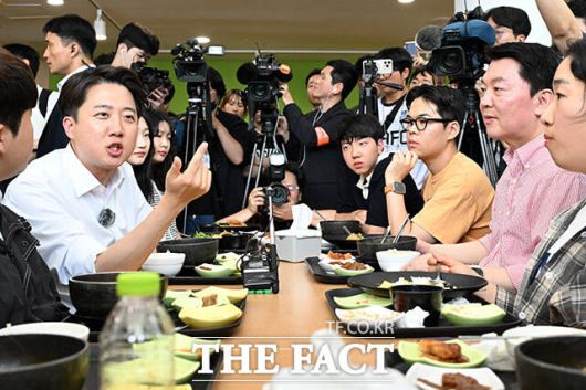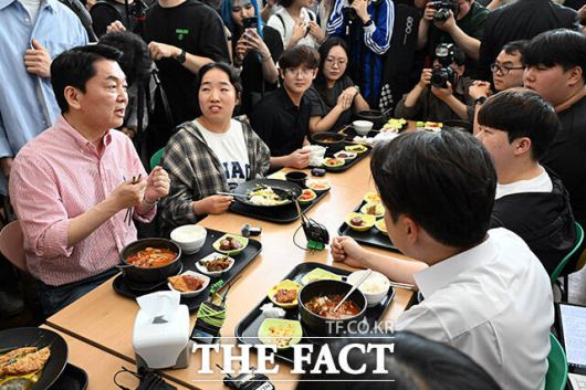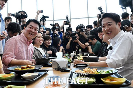 이날 안철수 국민의힘 공동선거대책위원장은 가천대를 찾아 이 후보의 '학식먹자 이준석' 일정을 함께 했다.