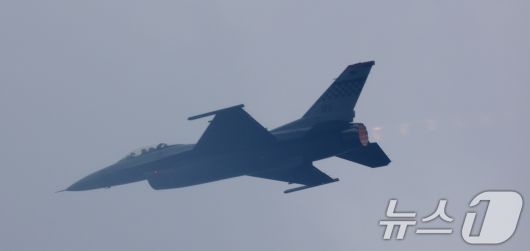 9일 경기 평택시 주한미군 오산공군기지에서 열린 '오산 에어파워데이 2025 미디어데이'에서 태평양공군사령부 F-16이 특수 비행을 하고 있다. 2025.5.9/뉴스1 ⓒ News1 김영운 기자 |