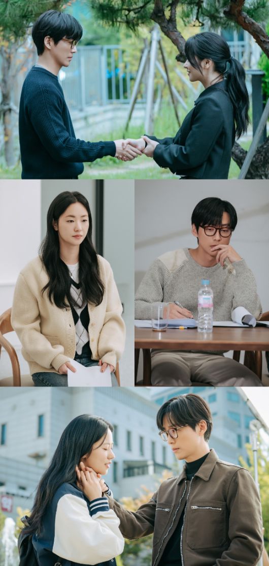 공개된 사진에는 시한부 자문에서 같은 배를 탄 영화감독과 배우라는 틀을 벗어나 점점 더 서로에게 마음이 깊어지는 이제하와 이다음의 관계 변화 과정이 담겨 있다. 어색하게 악수를 나누던 첫 만남을 지나 오디션장에서의 우연한 만남, 그리고 서로의 온기를 느끼게 되기까지 이들의 마음이 서서히 가까워지고 있는 것. 이에 내일이 없는 이제하와 이다음이 그려낼 가슴 뭉클한 '우리영화'가 기대되고 있다.