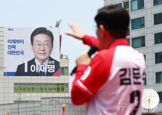 김문수 국민의힘 대통령 후보가 21일 경기 고양시 화정역 문화광장 앞에서 집중유세를 하고 있다. 2025.5.21/뉴스1 ⓒ News1 김민지 기자