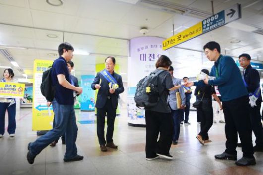 대전교통공사는 21일 대전역 대합실에서 시민을 대상으로 에스컬레이터 안전사고 예방 캠페인을 실시했다.