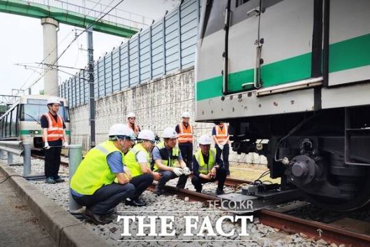 대전교통공사 판암차량기지에서 박필우 기술이사 등 임직원들이 21일 열차 탈선 복구 과정을 점검하고 있다. /대전교통공사 |