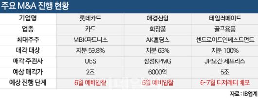 [마켓인]롯데카드부터 애경산업까지…내달 M&A 큰장 선다