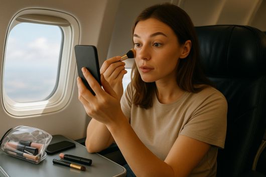 기내에서 한 여성이 화장을 하는 모습. [챗GPT로 제작한 이미지] |