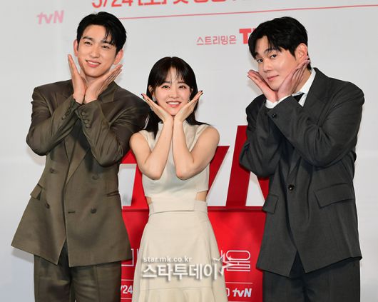 ‘미지의 서울’ 제작발표회에 참석한 박진영, 박보영, 류경수. 사진| 강영국 기자 |