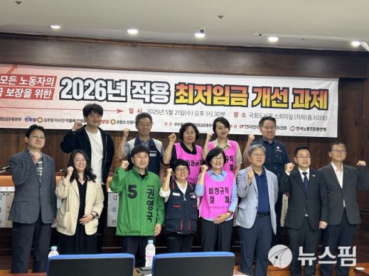 한국노동조합총연맹(한국노총)과 전국민주노동조합총연맹(민주노총)을 포함한 40개 단체로 구성된 '모두를위한최저임금운동본부'(본부)가 21일 오후 국회도서관 소회의실에서 '모든 노동자의 실질임금 보장을 위한 2026년 적용 최저임금 개선 과제 국회 토론회'를 열었다.