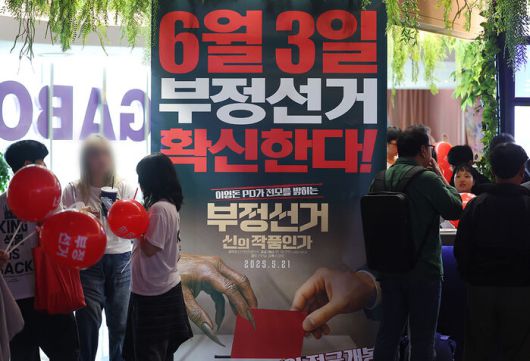 영화 포스터에 '6월 3일 부정선거 확신한다'는 문구가 새겨지기도 했습니다.