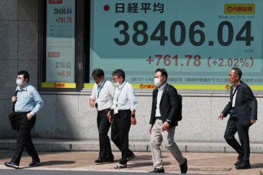 일본 도쿄의 한 증권사에서 사람들이 일본 닛케이 지수를 보여주는 전자 주식 게시판 앞을 걷고 있다. [AP] |