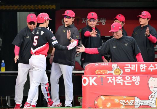KIA도 재빠르게 반격을 개시했다. 2회초 1사 후 한준수의 볼넷 출루, 2사 후 박정우의 내야 안타로 주자를 모으면서 고영표를 압박했다. 하지만 김규성이 2루수 땅볼에 그치면서 만회점 획득에 실패했다.