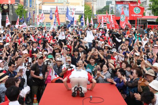 김문수 후보는 이날 경기 고양시 화정역 일대 유세에서 "저는 방탄유리도 필요 없고, 방탄조끼도 필요 없다. 대통령실 경호원도 필요 없다"며 "저는 국민 여러분 한 분 한 분이 저를 지켜 줄 것으로 믿는다"고 말했다.