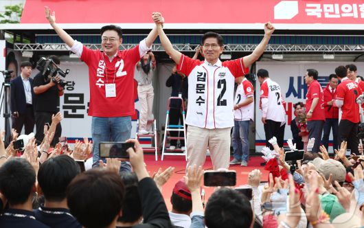 김 후보는 동두천 유세에서는 "(경기도지사 시절) 판교·광교·다산 등 대장동 수십 배를 개발했지만, 제가 부정부패 있다는 걸 들어봤느냐"며 "제 주변 사람이 구속된 걸 들어봤냐. 제 아내가 법인카드를 썼다는 걸 들어봤냐"고 반문했다.