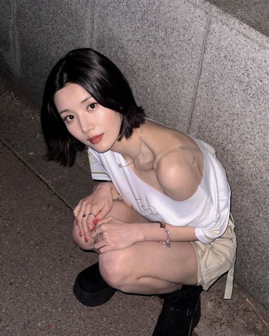사진 속 권은비는 흰색 오프숄더 크롭 티셔츠와 베이지 미니스커트, 또 다른 컷에서는 롱 웨이브 헤어스타일에 실버빛 슬립 원피스로 우아한 분위기를 연출했다.