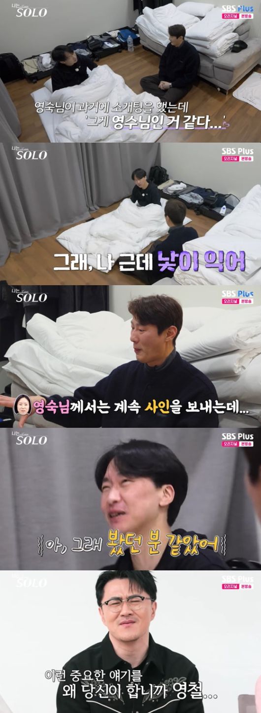 영철은 "두 분은 천생연분인 건가? 인연인 건가? 사실 되게 신기하니까"라고 말하자 영수는 복잡해지는 모습을 보였다.