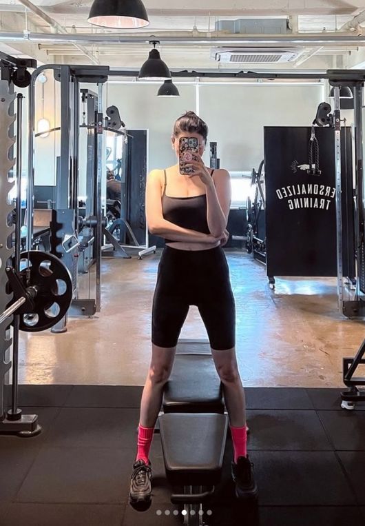 공개된 사진에는 몸에 붙는 레깅스 운동복을 몸매 확인을 하고 있는 장윤주의 모습이 담겨 있다. 장육주는 레깅스에 몸매가 드러나는 흰색 상의를 입고 군살 없이 늘씬한 ‘톱모델’의 자태를 뽐냈다. 잘록한 허리와 볼륨감 있는 몸매로 시선을 집중시키고 있는 장윤주였다. 173cm의 키에 늘씬한 일자 다리도 눈길을 끈다.