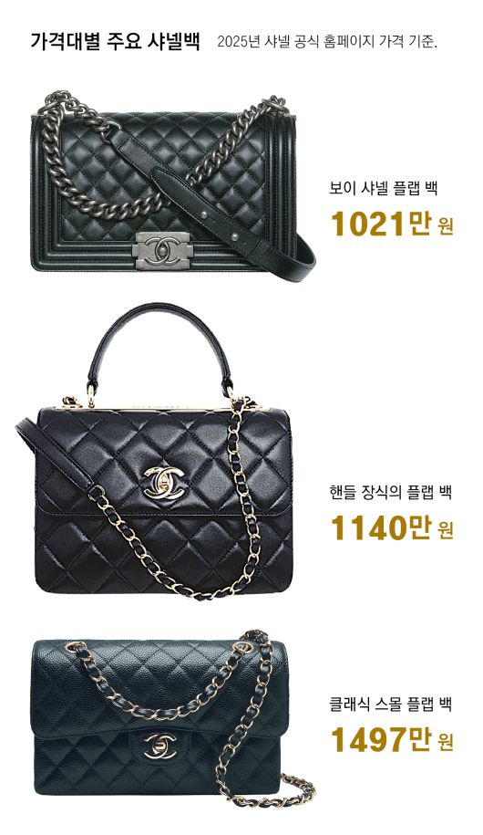 ‘1000만 원대 샤넬백’ 중 가장 인기 있는 제품은 ‘보이 샤넬 플랩 백’으로, 공식 홈페이지 가격이 1021만 원(2025년 기준)이다. 그보다 위 가격대에서는 ‘핸들 장식의 플랩 백’(1140만 원), ‘클래식 스몰 플랩 백’(1497만 원) 등이 있다. 전 씨가 애초에 건넨 샤넬백, 유 씨가 교환해서 받은 샤넬백이 이들 제품 중에 있을 가능성도 제기된다.