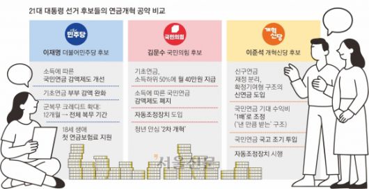 하지만 세 후보 모두 공적 연금의 재정난 해결과 구조 개혁의 큰 그림을 그리기보다 노인과 청년의 표심을 겨냥한 단편적 공약에 머물렀다는 지적이 나온다.