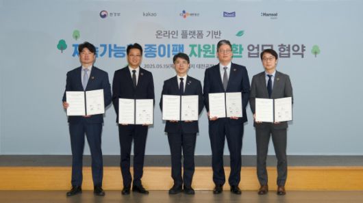 카카오는 지난 15일 대전의 한솔제지 대전공장에서 환경부와 매일유업, 한솔제지 등과 카카오메이커스 플랫폼을 통해 손쉽게 종이팩을 수거하는 회수 시스템 구축에 관한 협약식을 진행했다. 이번 협약을 토대로 카카오는 카카오메이커스 플랫폼을 활용해 종이팩 수거 서비스를 운영하고, 환경부는 전 과정에 대한 제도 개선 등 정책적 지원을 담당하게 된다. 단발성 프로젝트에서 한 단계 나아가 상시 수거 서비스를 구축해 일상 속의 실천을 독려한다는 목표다.