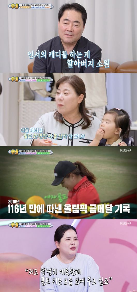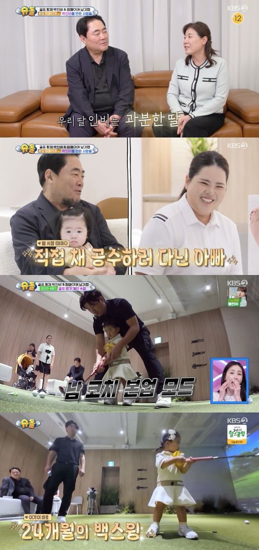 특히 박인비 아버지는 “인서도 골프 가르친다고 하니”라며 인서를 향해 “인서야 빨리 커서 아빠 소원 들어줘라. 훌륭한 골프 선수가 되어라”라고 말했다. 그러면서 인터뷰를 통해 “인서 골프백 메고 캐디 해주는 게 내 소원이다”라고 소망을 전했다.
