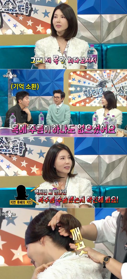 (엑스포츠뉴스 김예나 기자) 주름 없이 매끈한 목 피부를 자랑한 전 앵커 백지연의 발언이 온라인을 뜨겁게 달궜다.