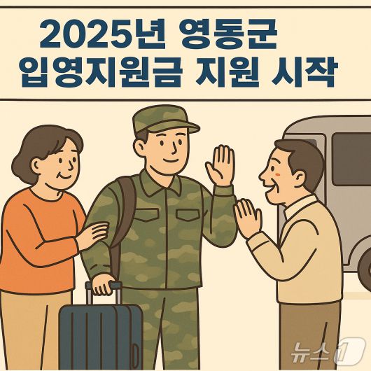 이달 1일부터 현역병과 사회복무요원(상근예비역 포함)으로 입영하는 청년에게 지급한다. 영동군에 1년 이상 주민등록을 둔 청년이어야 한다.