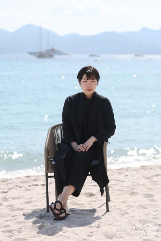 (파리=뉴스1) 이준성 기자 = 제78회 칸 국제영화제가 열리고 있는 프랑스 남부 소도시 칸(Cannes) 크루아제트 해변의 한 카페에서 비공식 부문인 비평가주간 단편 경쟁 부문에 초청된 애니메이션 ‘안경’의 정유미 감독이 뉴스1과 인터뷰를 하고 있다. 2025.5.22/뉴스1
