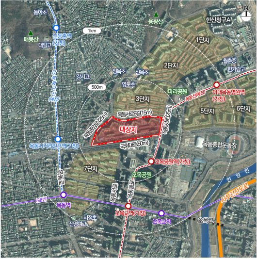 목동4단지 아파트 반경 1km 내 5호선 오목교역과 목동역이 있고, 남측 국회대로 상부공원화 사업이 추진되는 곳이다. 신속통합기획(자문사업)으로 정비구역 지정 및 정비계획(안)이 마련됐다.