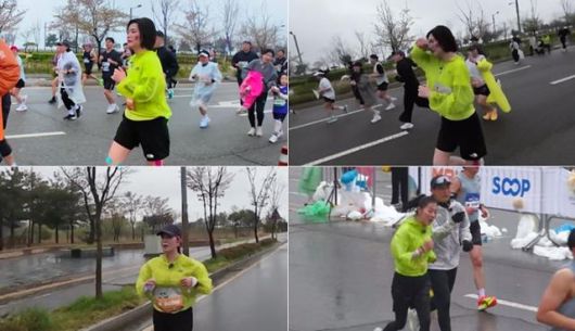 가수 율희가 마라톤 중 아이들 생각에 오열한다.