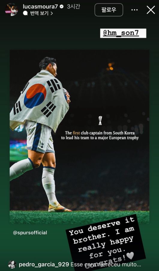 [인터풋볼] 신동훈 기자 = 루카스 모우라의 응원은 손흥민에게 감동을 줬다.