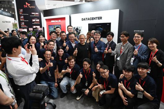 젠슨 황 엔비디아 최고경영자가 타이베이 난강전람관 4층의 SK하이닉스 부스를 방문해 남긴 짧은 문장이다. 컴퓨텍스 2025는 지난 20일 개막해 오는 23일까지 진행되는 세계 최대 규모의 PC 하드웨어 박람회다. 올해 행사는 인공지능을 넘어(AI Next)를 주제로 진행되며 엔비디아를 비롯해 인텔, AMD, 퀄컴, Arm, 브로드컴 등 글로벌 AI 기업들이 총출동한다. 국내 메모리 반도체 기업으로는 SK하이닉스가 유일하게 부스를 열었는데, 이를 축하하기 위해 젠슨 황 엔비디아 CEO가 깜짝 방문했다.