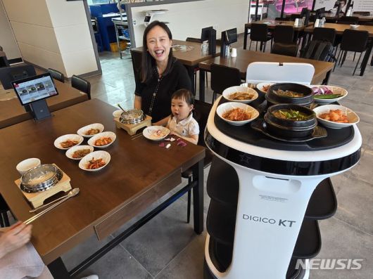 [여수=뉴시스]여수관을 찾은 고객이 하이오더로 편리하게 주문하고 서빙로봇으로 음식을 제공받아 식사를 하는 모습. (사진 KT 제공) praxis@newsis.com |