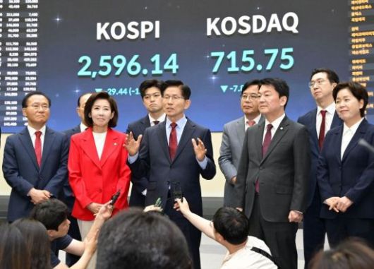 김문수 국민의힘 대선 후보가 22일 서울 여의도 한국거래소에서 열린 중앙선거대책위원회 현장 회의에서 홍보관을 둘러본 후 백브리핑을 하고 있다. <ⓒ투자가를 위한 경제콘텐츠 플랫폼, 아시아경제(www.asiae.co.kr) 무단전재 배포금지>