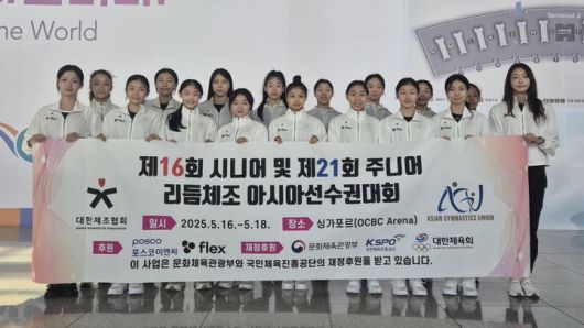 [서울=뉴시스] 지난 16일부터 18일까지 싱가포르 OCBC 아레나에서 열린 제21회 주니어 및 제16회 시니어 리듬체조 아시아선수권대회에 출전한 한국 리듬체조 국가대표 선수단. (사진=대한체조협회 제공) 2025.05.22. *재판매 및 DB 금지