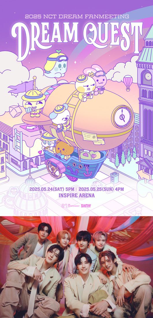 NCT DREAM은 5월 24~25일 양일간 인천 영종도 인스파이어 아레나에서 ‘2025 NCT DREAM FANMEETING DREAM QUEST’(2025 엔시티 드림 팬미팅 드림 퀘스트)를 개최하고, 1년 10개월 만에 한국 팬미팅으로 팬들과 만난다.